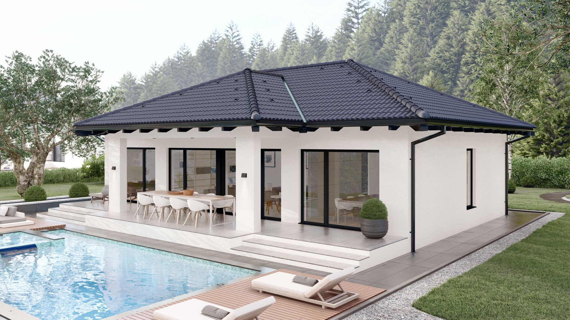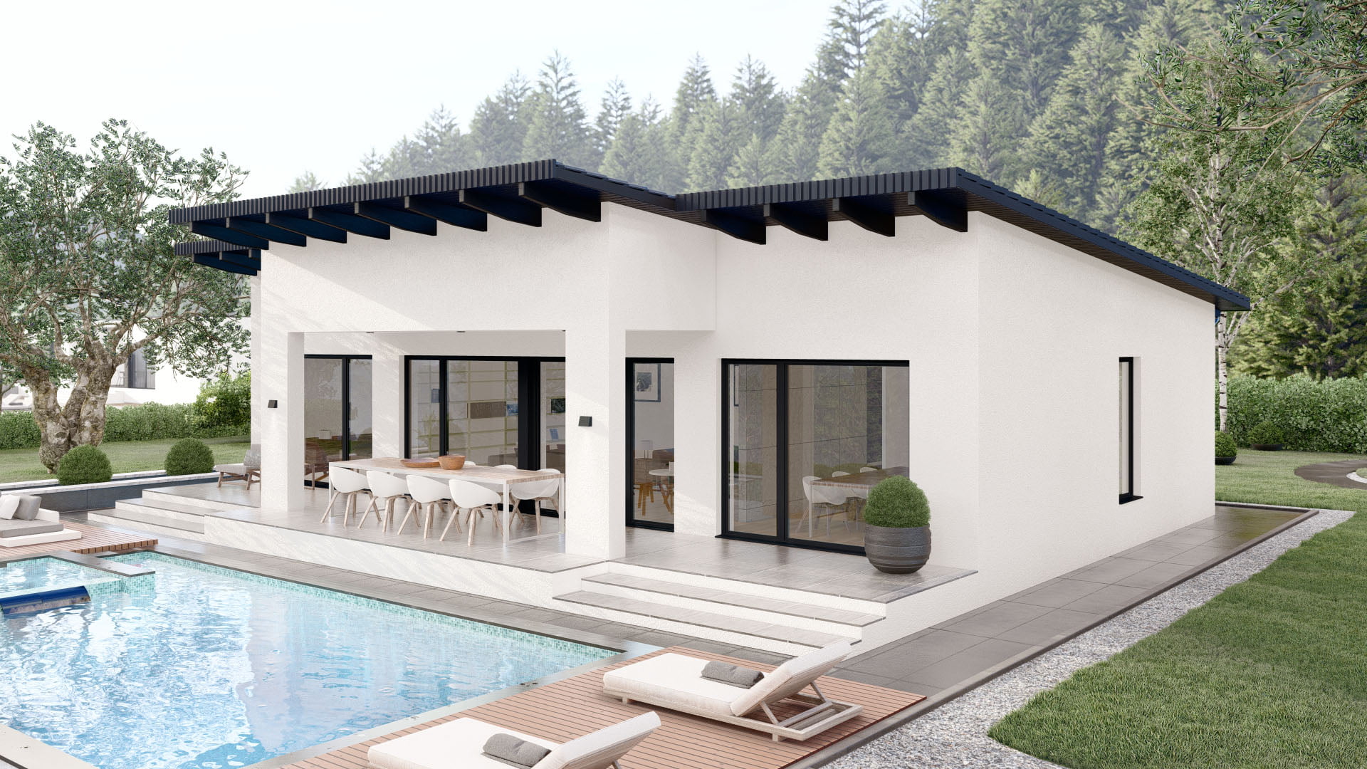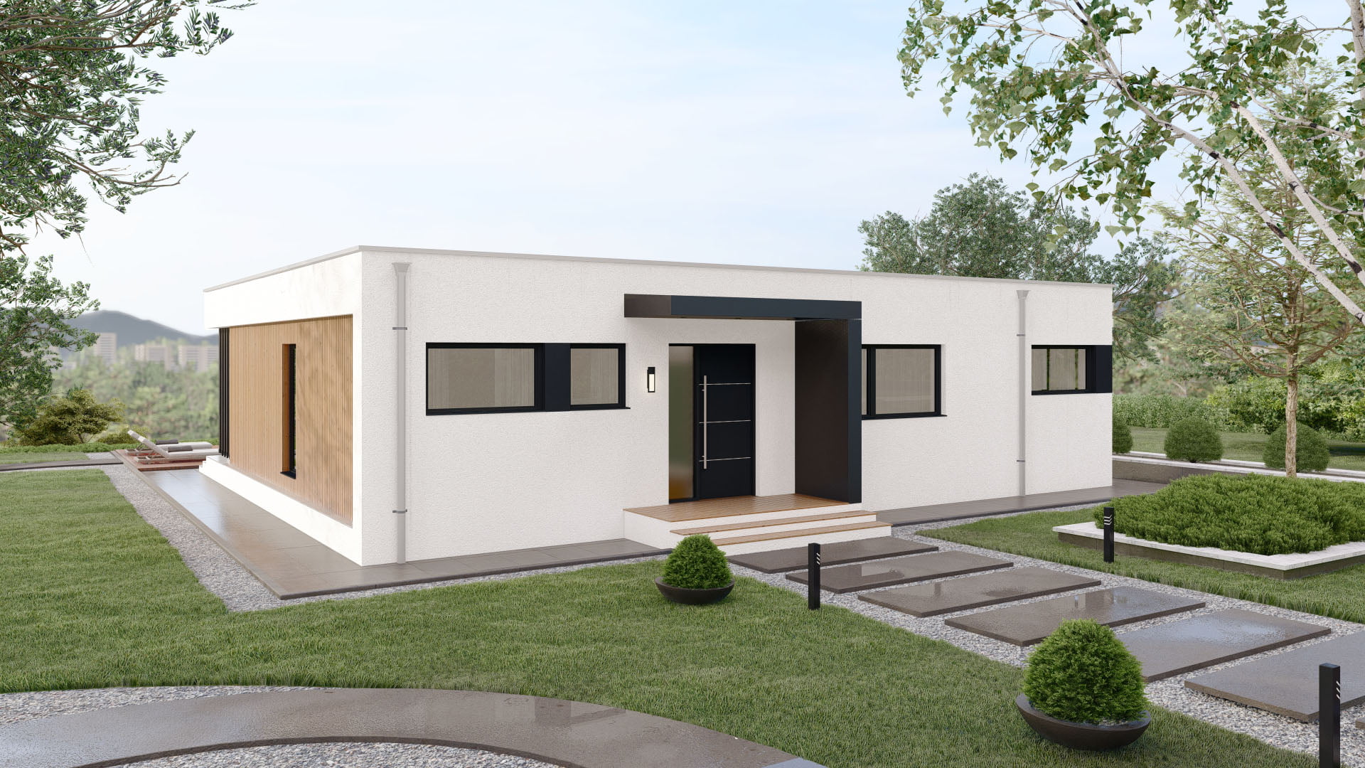 Modernes Fertighaus Bellevue A001 mit eleganter Fassade und großzügigen Fensterfronten von BAUTENT