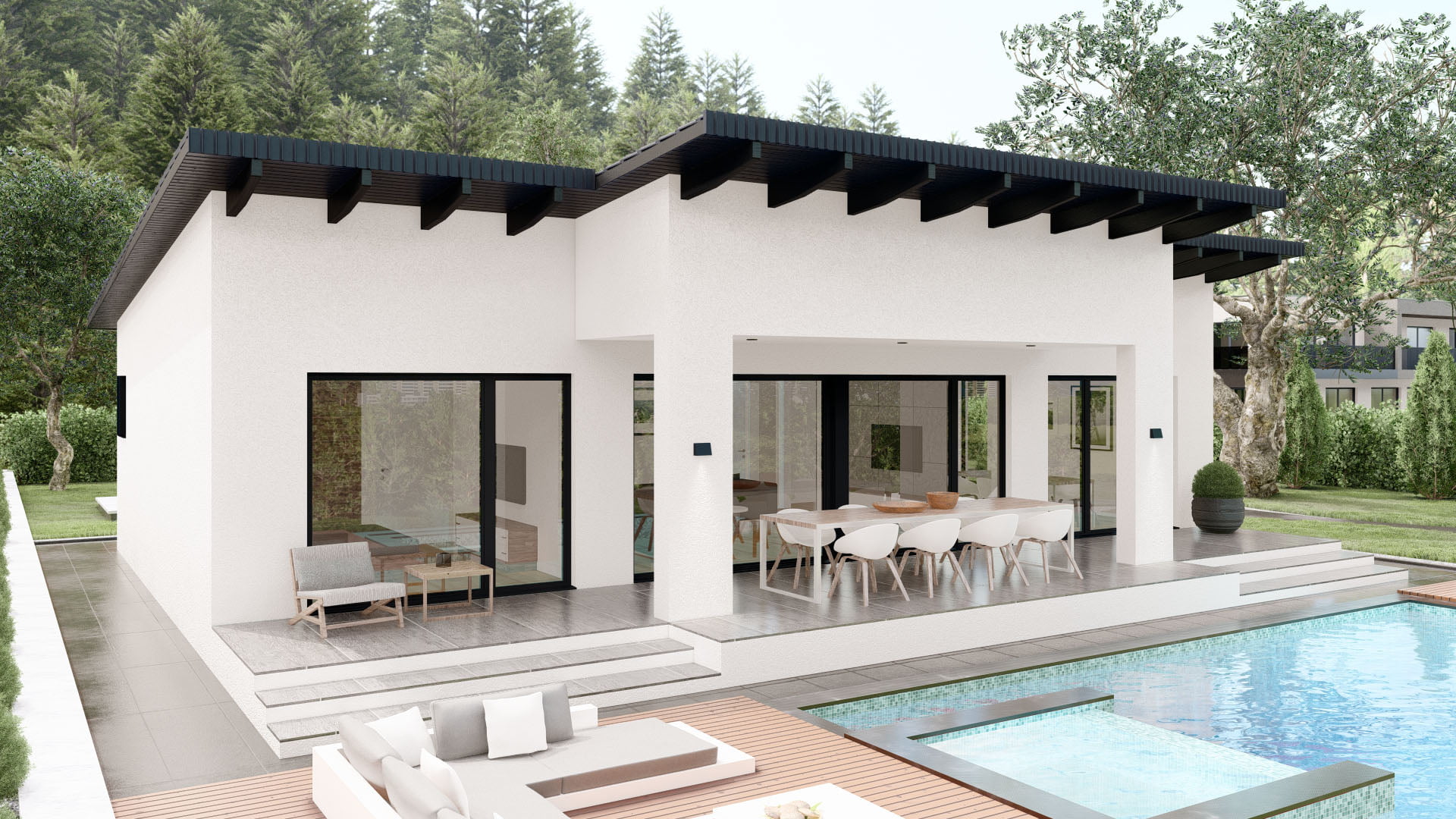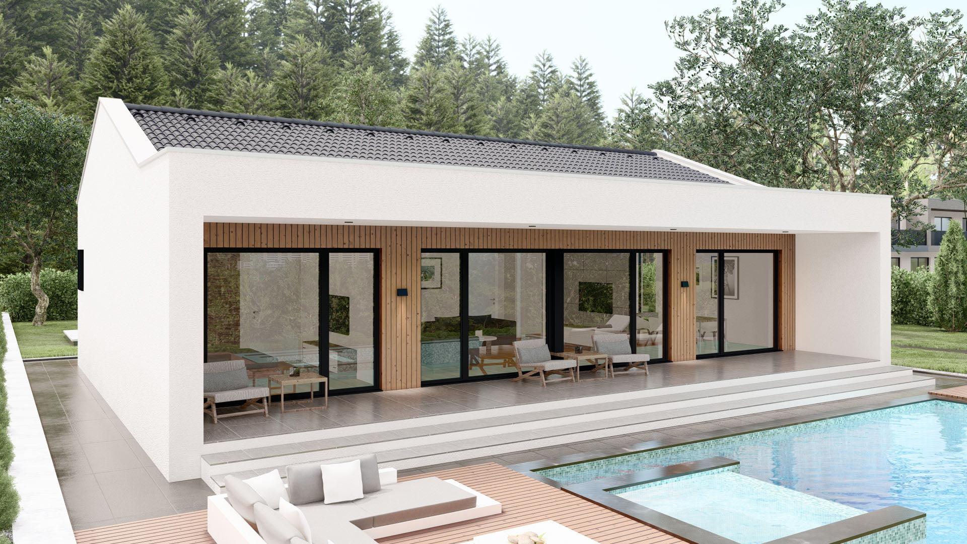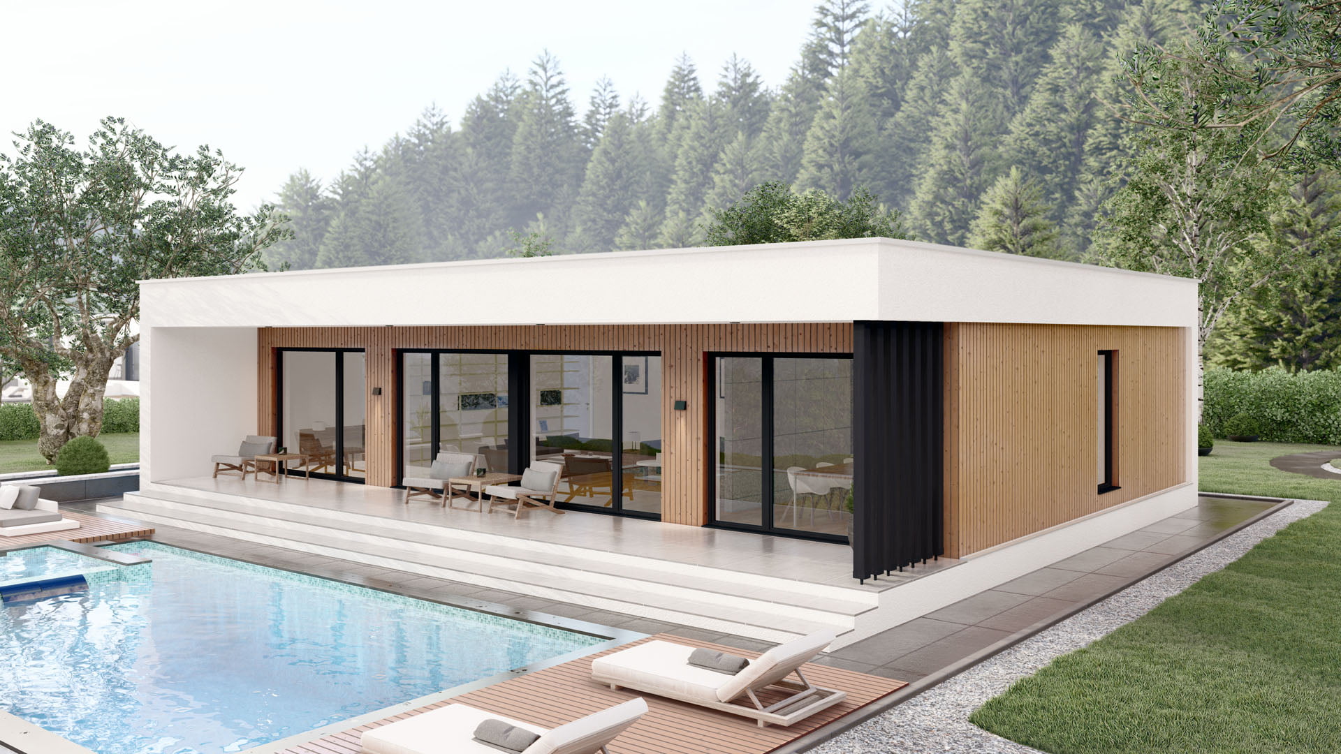 Modernes Fertighaus Bellevue A001 mit eleganter Fassade und großzügigen Fensterfronten von BAUTENT