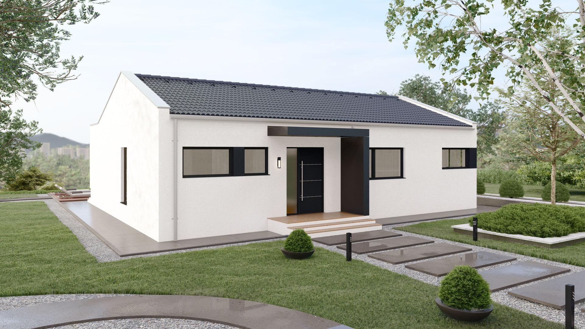 Bellevue überzeugt durch seine zeitlose Architektur und ein durchdachtes Raumkonzept. Die ebenerdige Bauweise ermöglicht komfortables Wohnen für alle Lebensphasen. Der klassische Satteldachstil verleiht dem Haus eine vertraute, gemütliche Optik. Ideal für Menschen, die sich ein modernes, aber traditionell wirkendes Eigenheim wünschen – ob als Familie oder Paar.