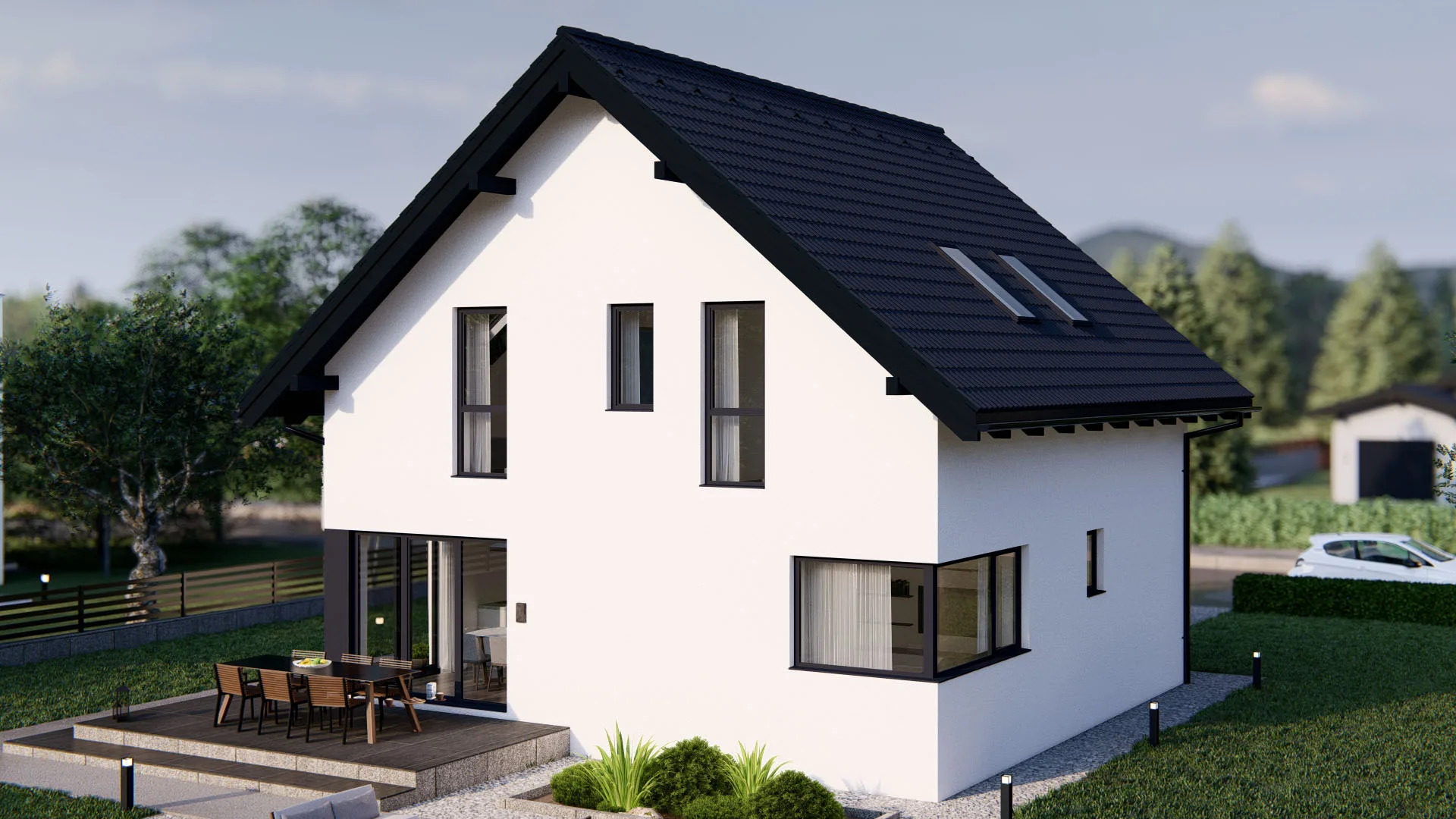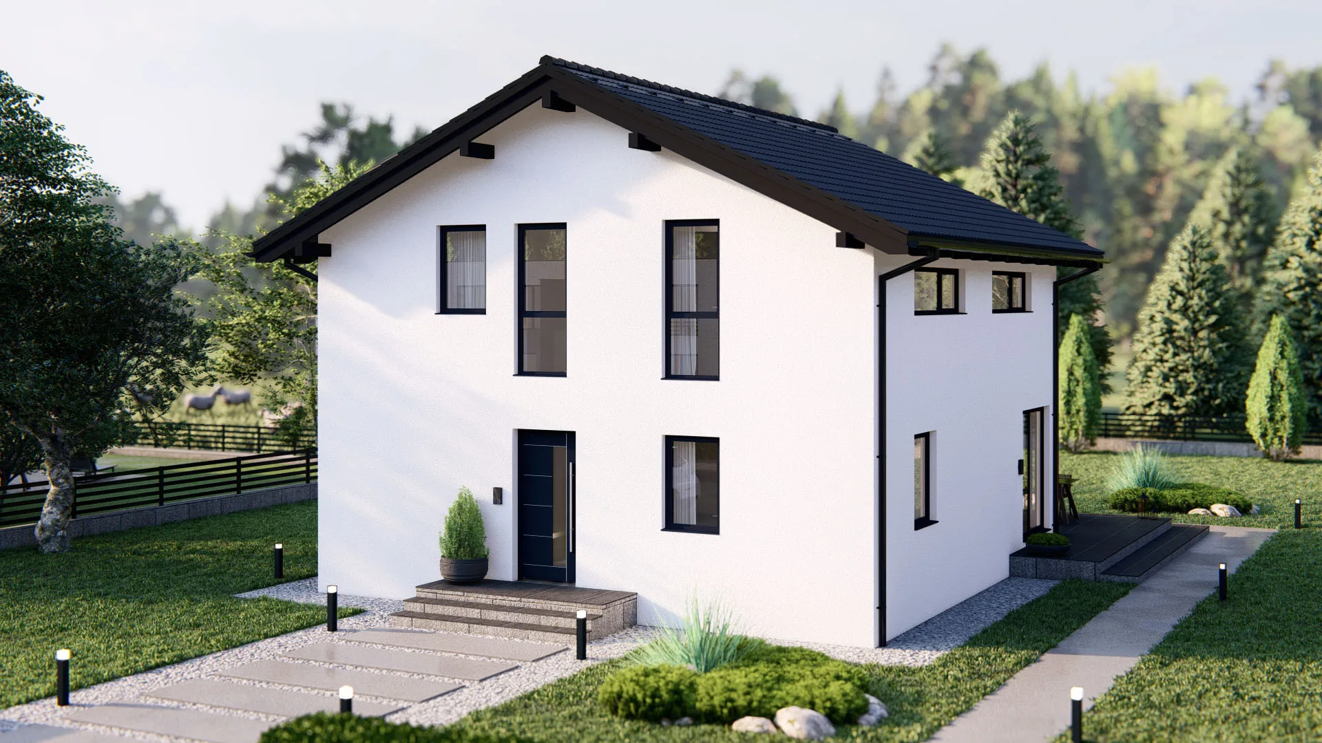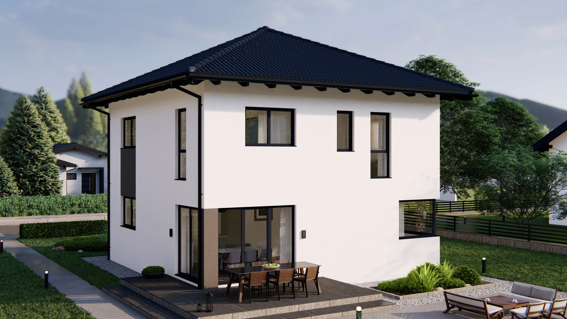 Helena verbindet den Charme klassischer Hausarchitektur mit den Ansprüchen moderner Familien. Die zwei Vollgeschosse bieten genügend Platz für verschiedene Wohnkonzepte – ob offener Wohnbereich mit Küche oder private Rückzugsorte für jedes Familienmitglied. Die sanft geneigte Dachform fügt sich harmonisch in die Umgebung ein und strahlt Ruhe und Beständigkeit aus. Hier kann man ankommen, sich entfalten und in jeder Lebenslage wohlfühlen.