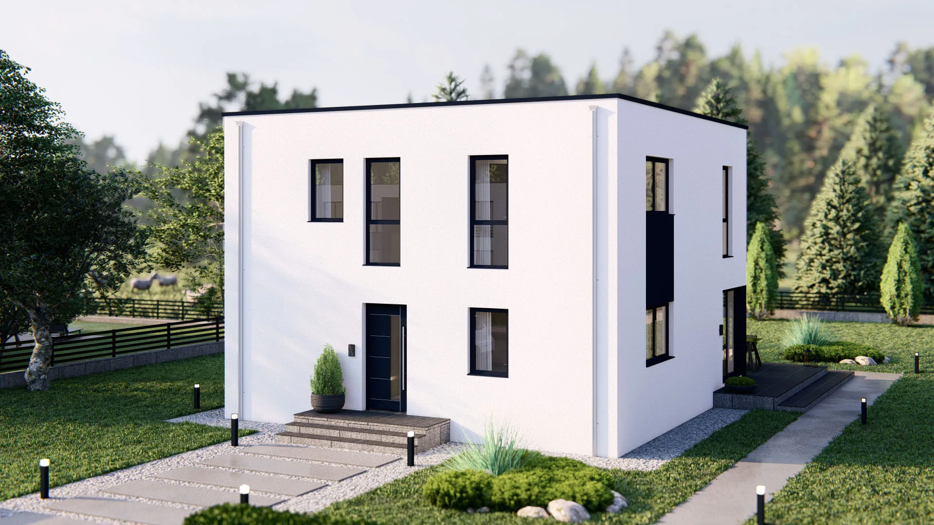 Modernes Fertighaus mit 25-Grad-Dachneigung - BAUTENT Architekturmodell A001 für energieeffizientes Bauen