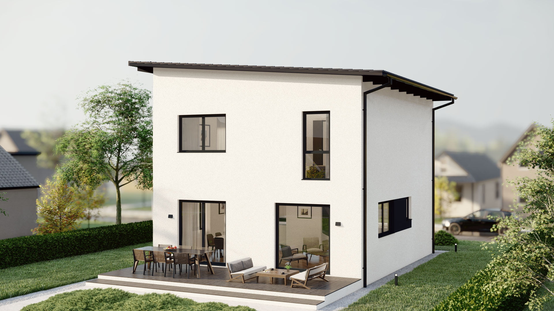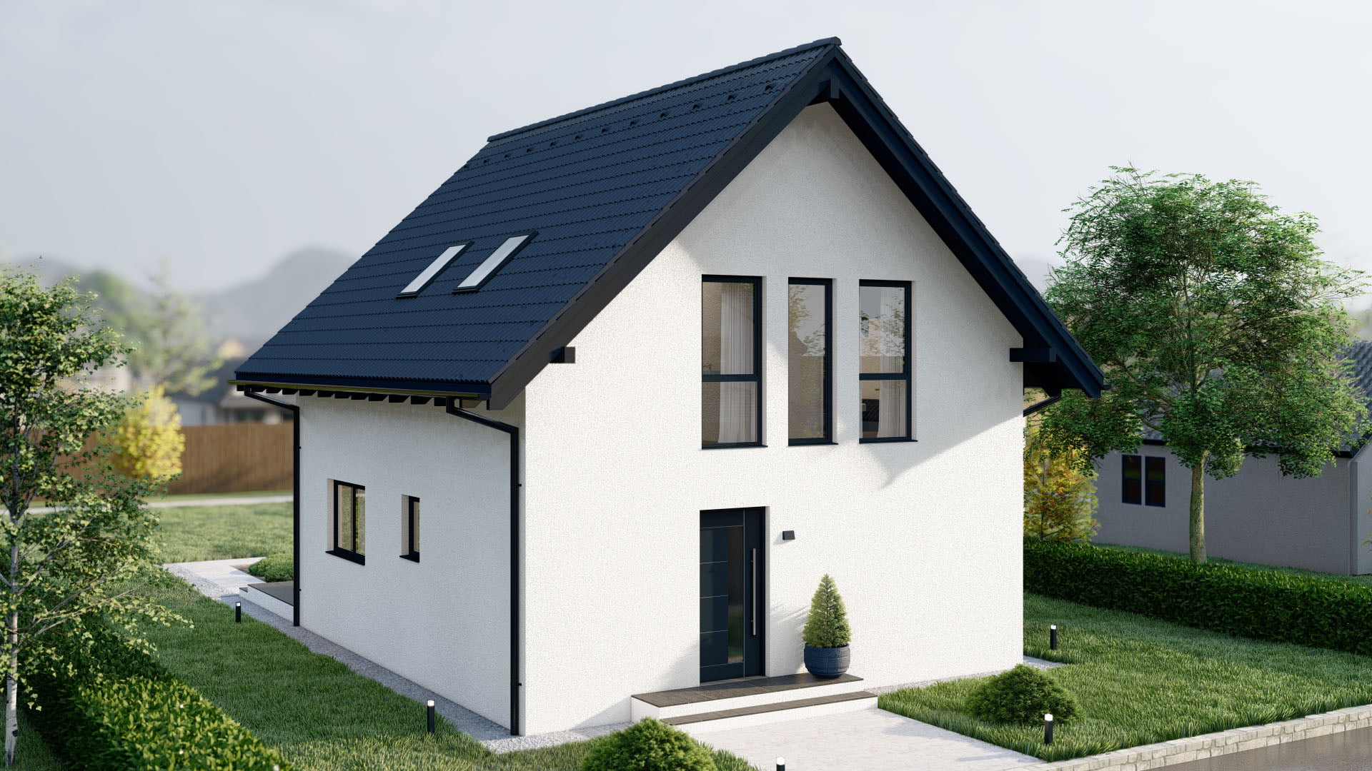 Hillside verbindet traditionelle Architektur mit modernen Wohnideen. Das steile Satteldach schafft nicht nur charmante Proportionen, sondern auch ein großzügiges Raumgefühl im Obergeschoss. Ideal für Familien, die auf zwei Etagen genügend Platz für Rückzug und Gemeinschaft suchen. Durchdachte Grundrisse, viel Tageslicht und eine wohnliche Atmosphäre machen dieses Haus zu einem Ort zum Ankommen und Wohlfühlen – Tag für Tag.