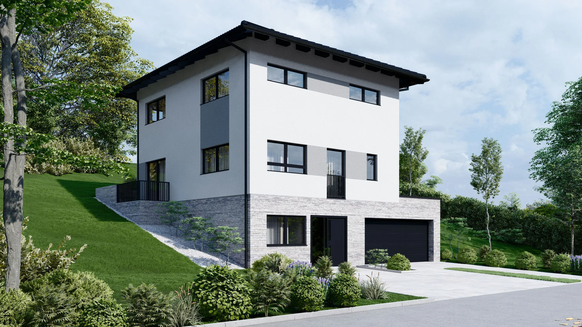 Laurel bietet auf 3,5 Etagen ein außergewöhnliches Raumgefühl – perfekt für große Familien oder kreative Wohnideen mit Homeoffice oder Atelier. Das klassische Satteldach sorgt für eine harmonische Optik und großzügige Raumhöhen im Dachgeschoss. Durchdachte Grundrisse, helle Räume und vielseitige Nutzungsmöglichkeiten machen dieses Haus zu einem Ort voller Möglichkeiten und individueller Freiräume.