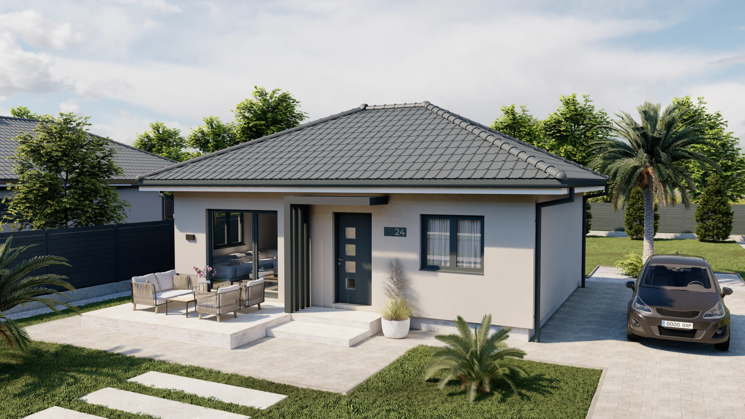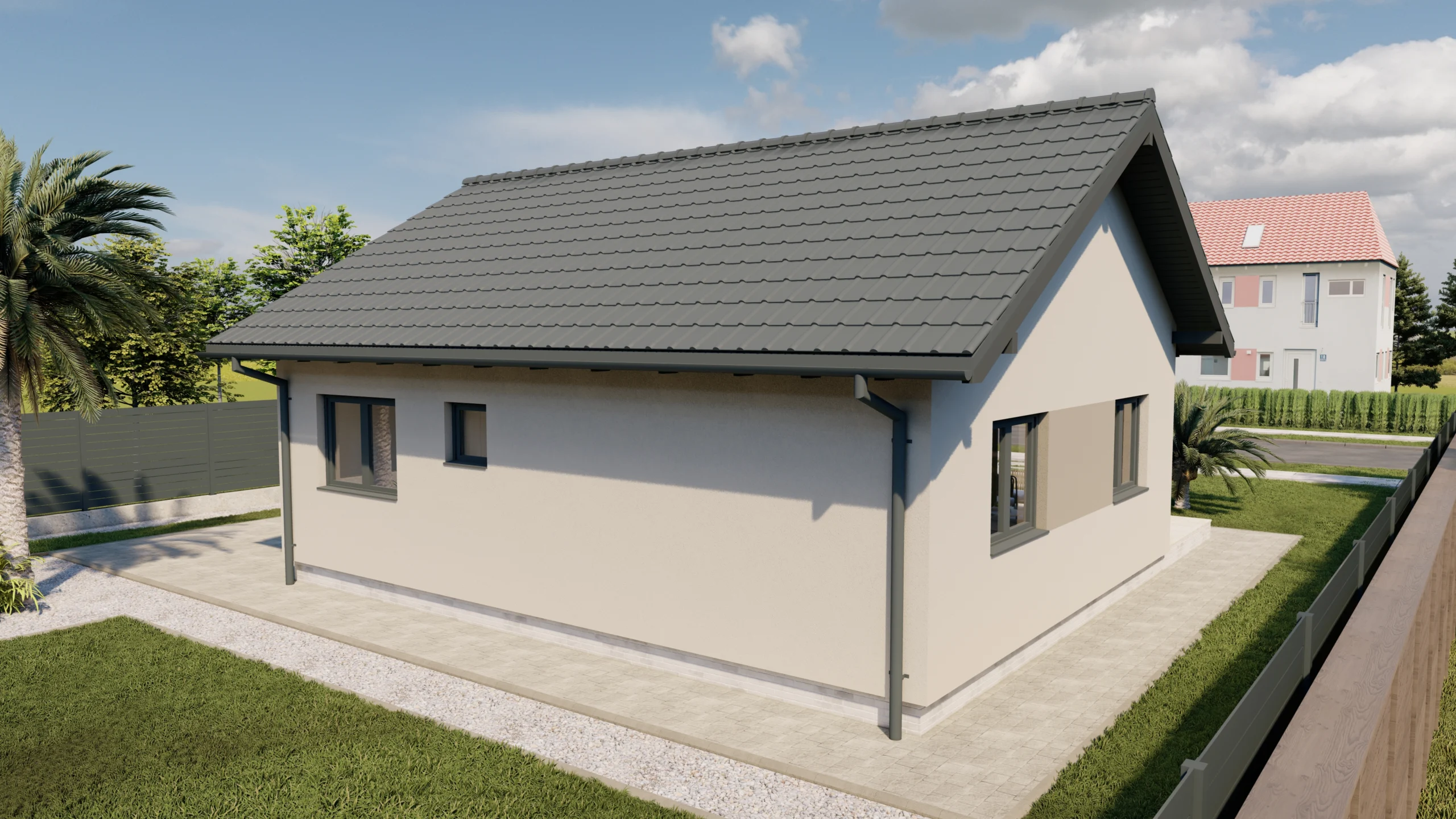 Kompakter Bungalow mit 70,6 m², 1 Etage, Walmdach und gemütlicher Terrasse (1,9 m²) – ideal für Paare, Singles oder kleine Familien.