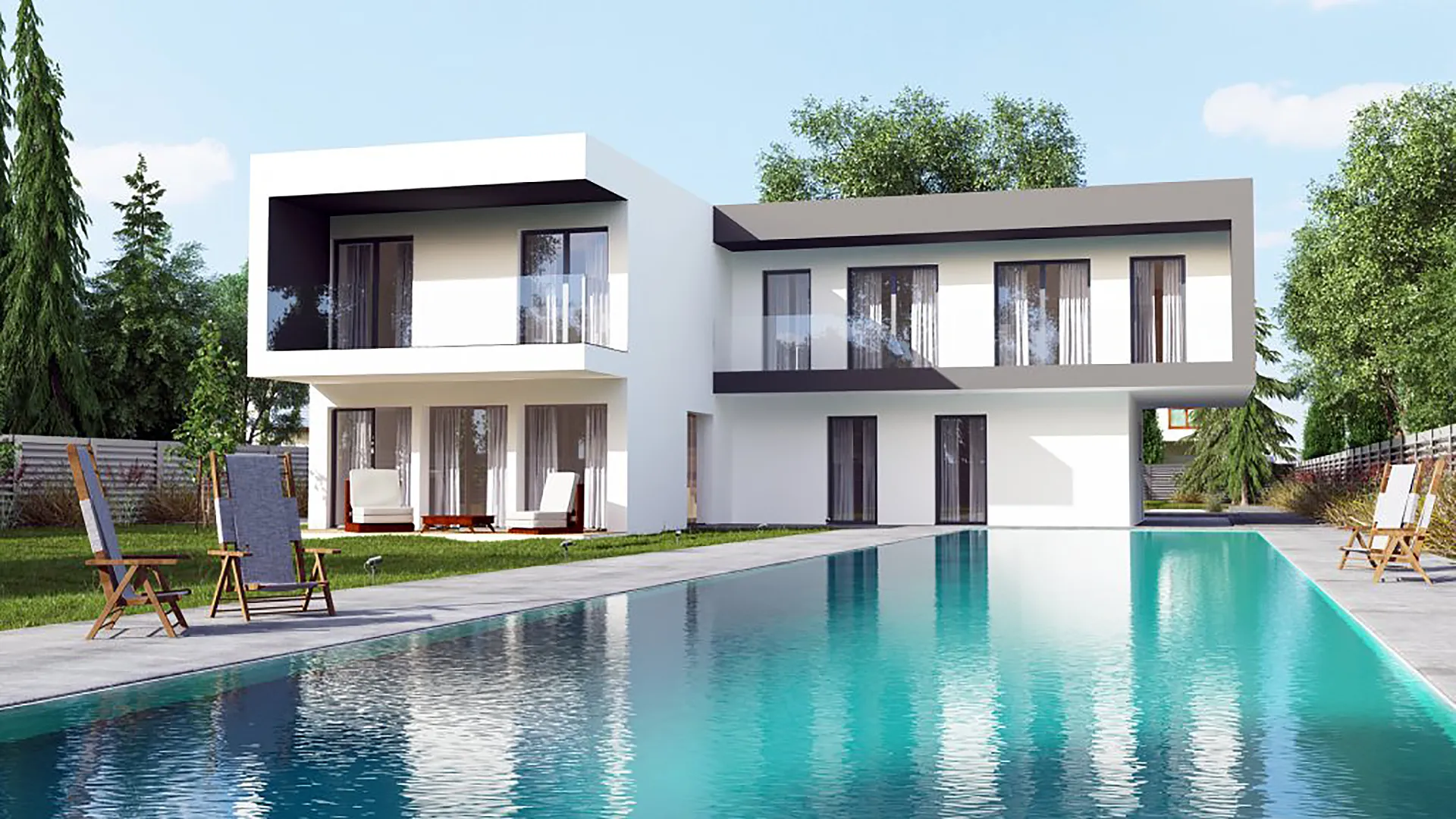 Mediteran bietet eine großzügige Raumstruktur mit lichtdurchfluteten Bereichen und moderner Architektur. Das Flachdach unterstreicht den klaren Stil, während die durchdachte Grundrissgestaltung sowohl Kommunikation als auch Rückzug ermöglicht. Perfekt für Familien, die stilvoll und großzügig wohnen möchten.