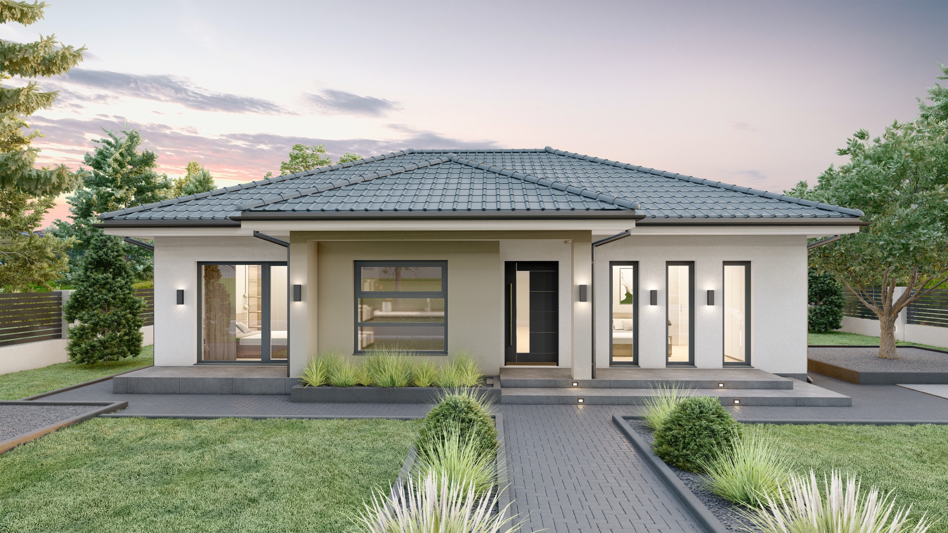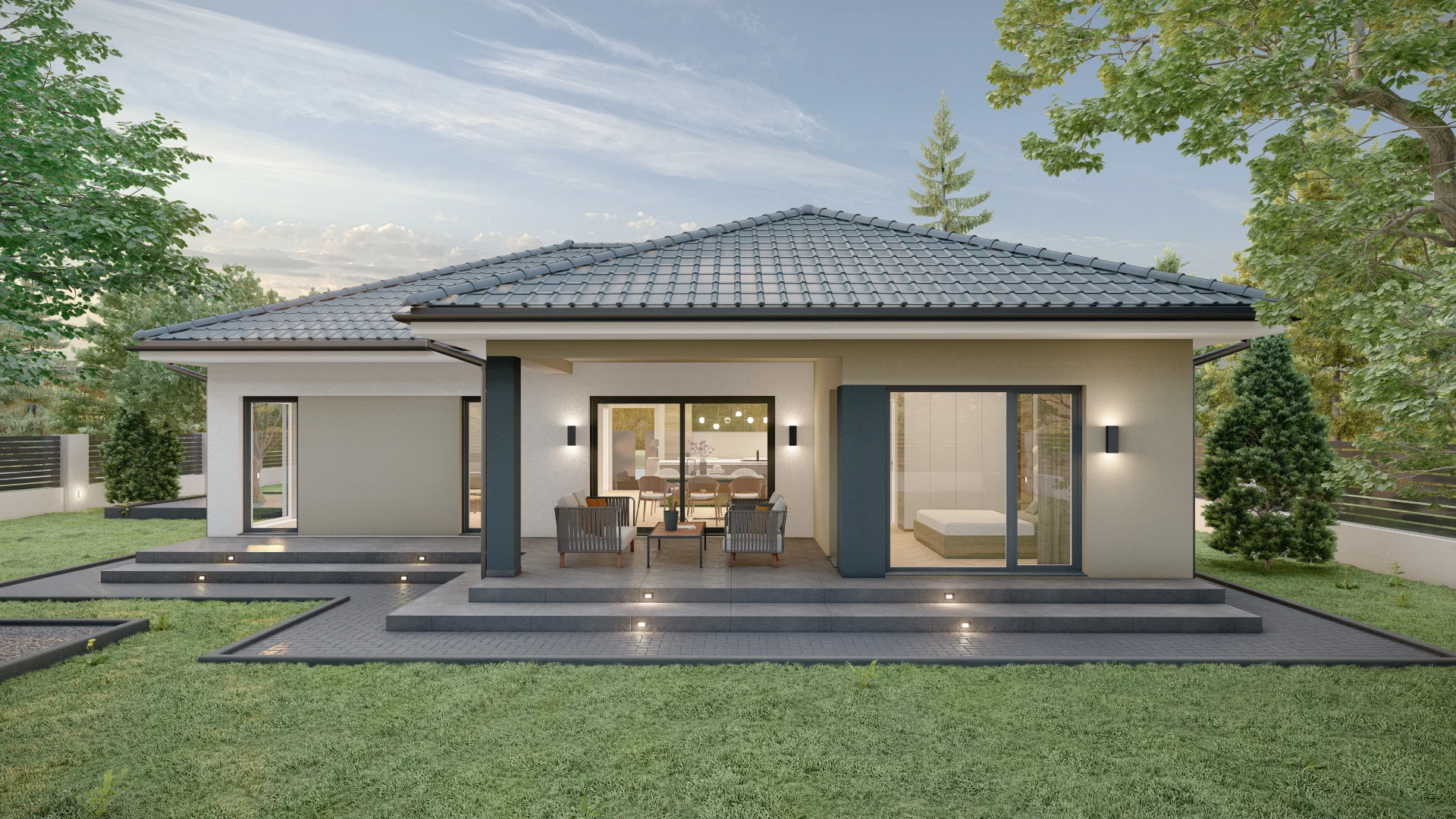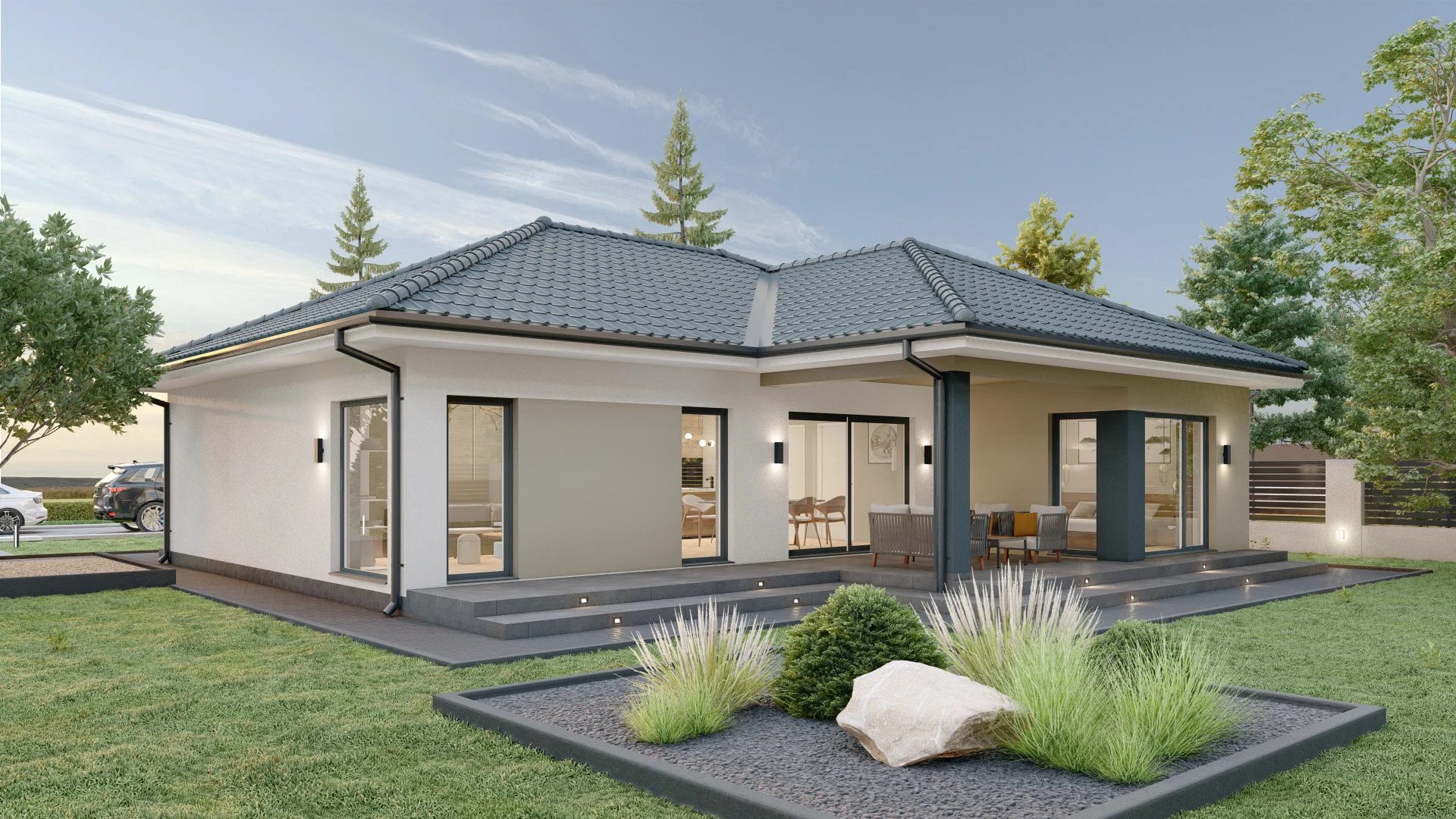 Moderner Bungalow mit 132,8 m², 1 Etage, elegantem Flachdach und großer Terrasse (19,6 m²) – ideal für Paare oder kleine Familien, die modernes Wohnen lieben.