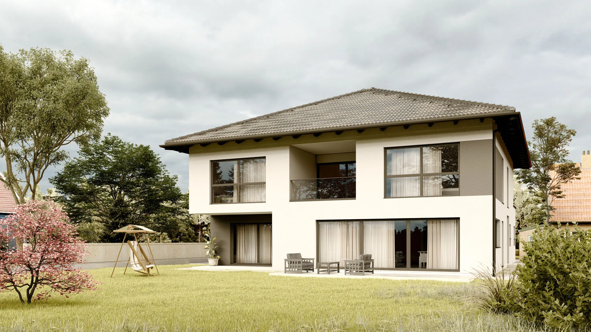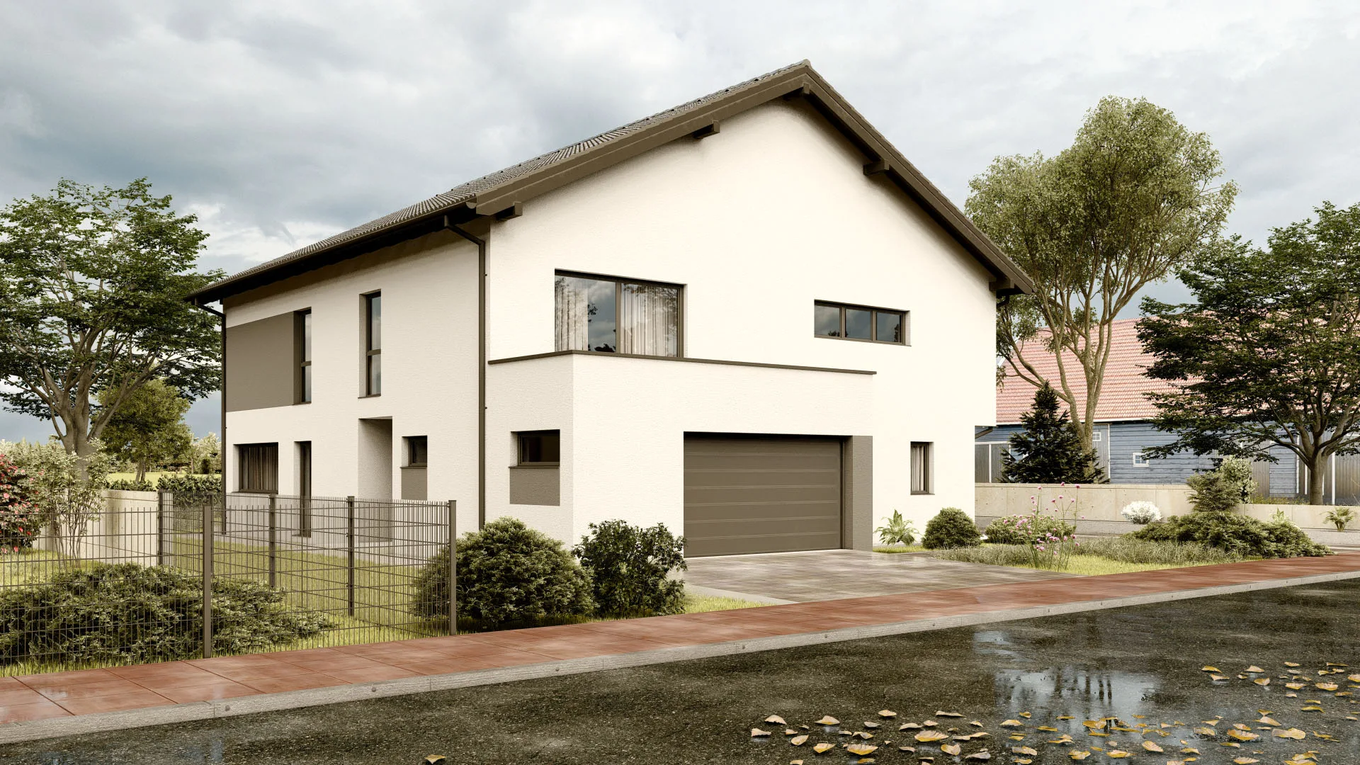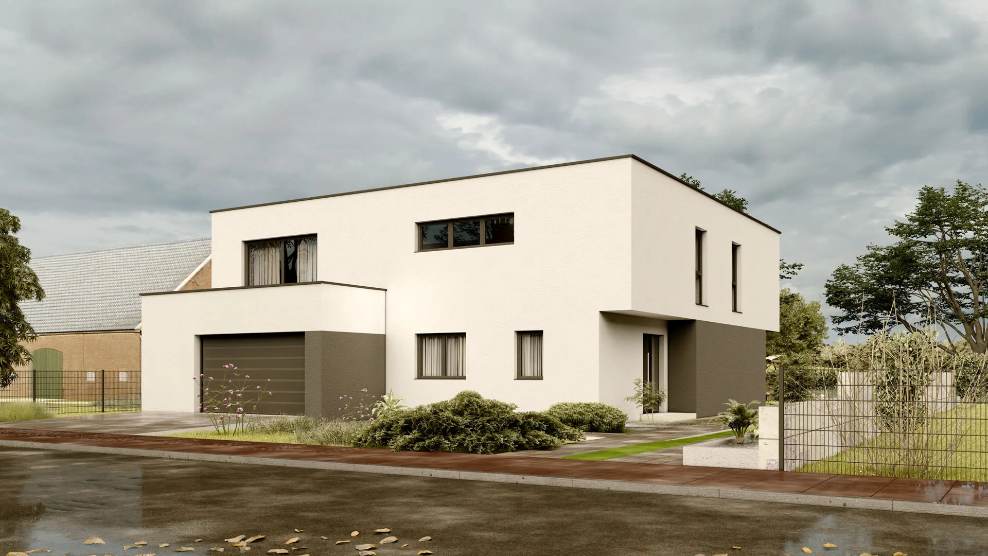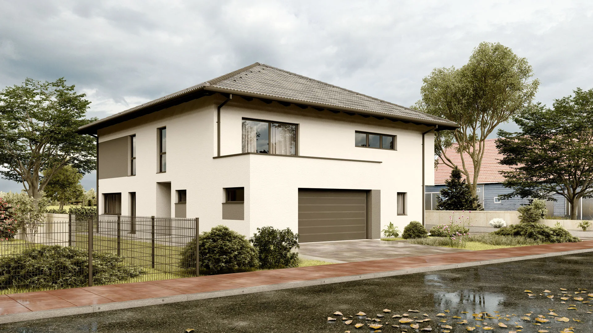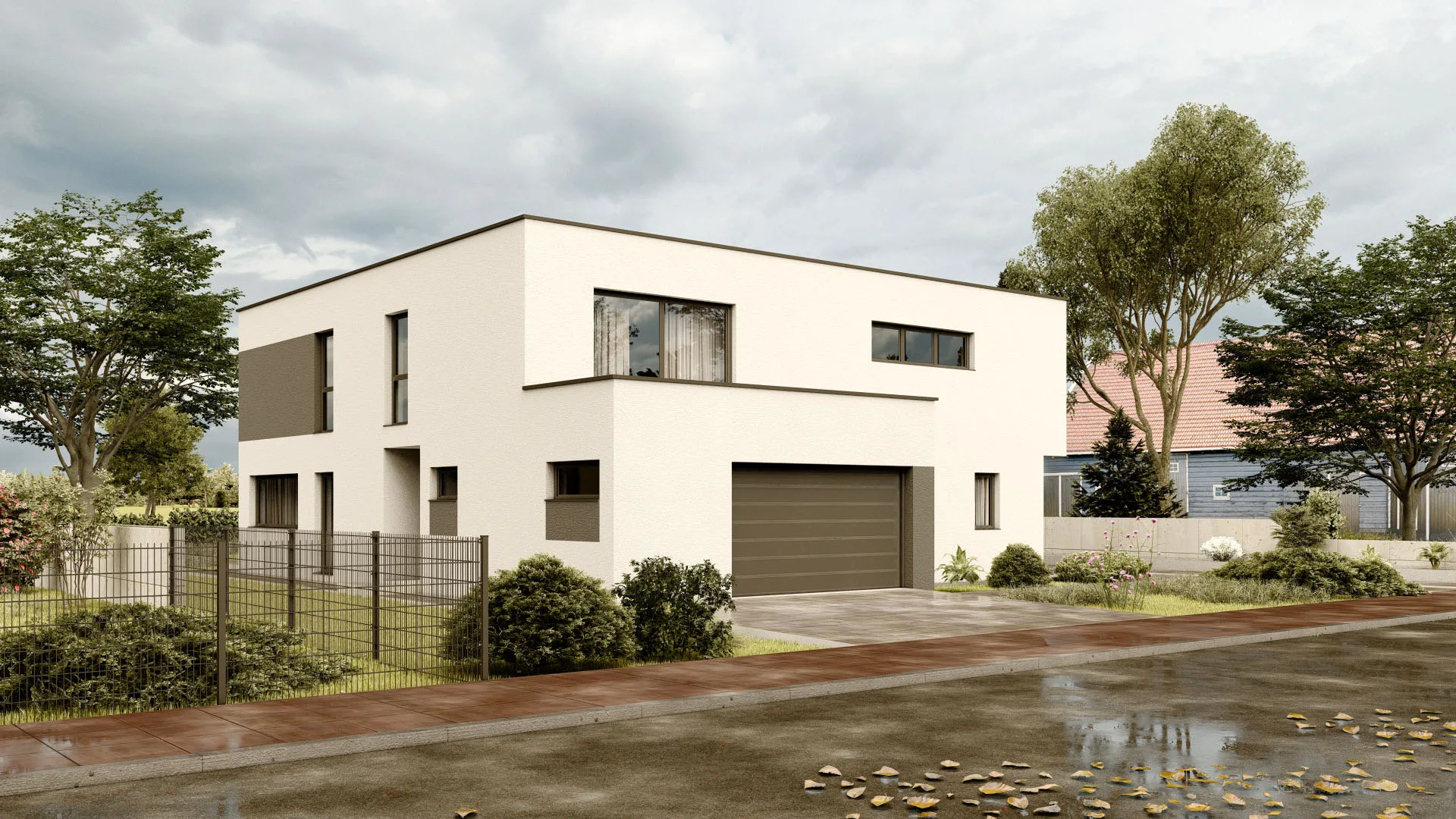 Großzügiges Familienhaus mit 366,7 m², 2 Etagen, modernem Flachdach (7° Neigung) und großzügiger Terrasse (22,1 m²) – ideal für Familien, die viel Raum und modernes Design lieben.