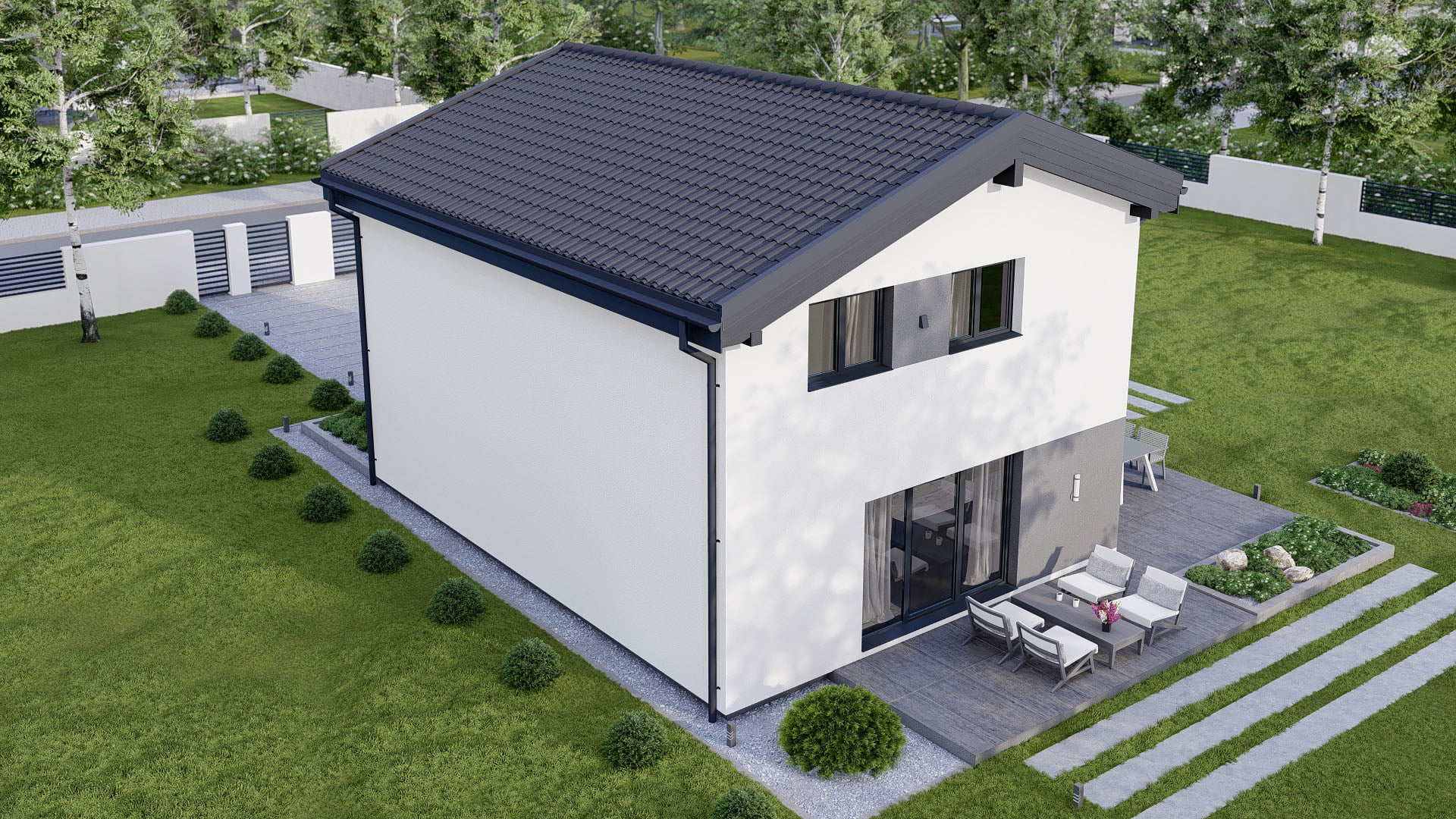 Charmantes Familienhaus mit 150 m², 2 Etagen und traditionellem Satteldach (19,3° Neigung) – perfekt für kleine Familien mit großen Wohnträumen.