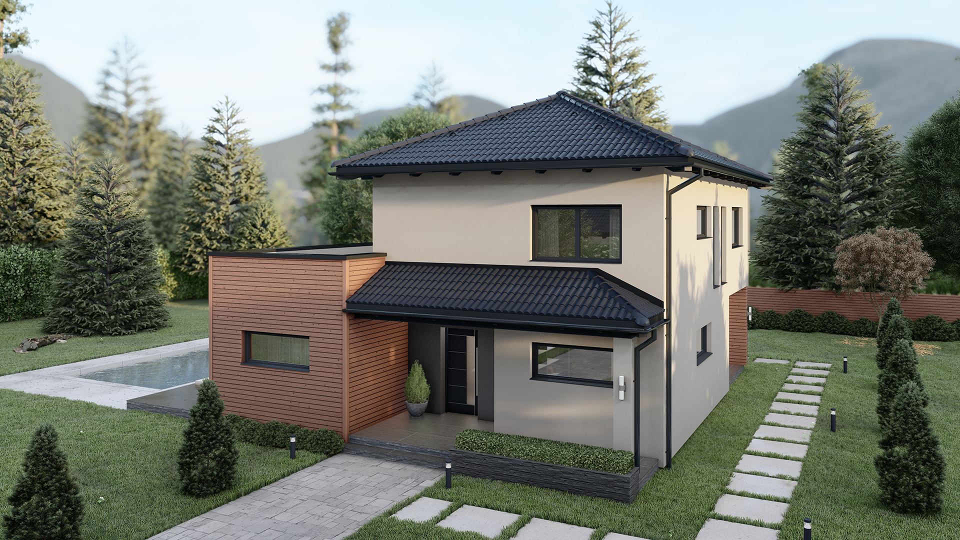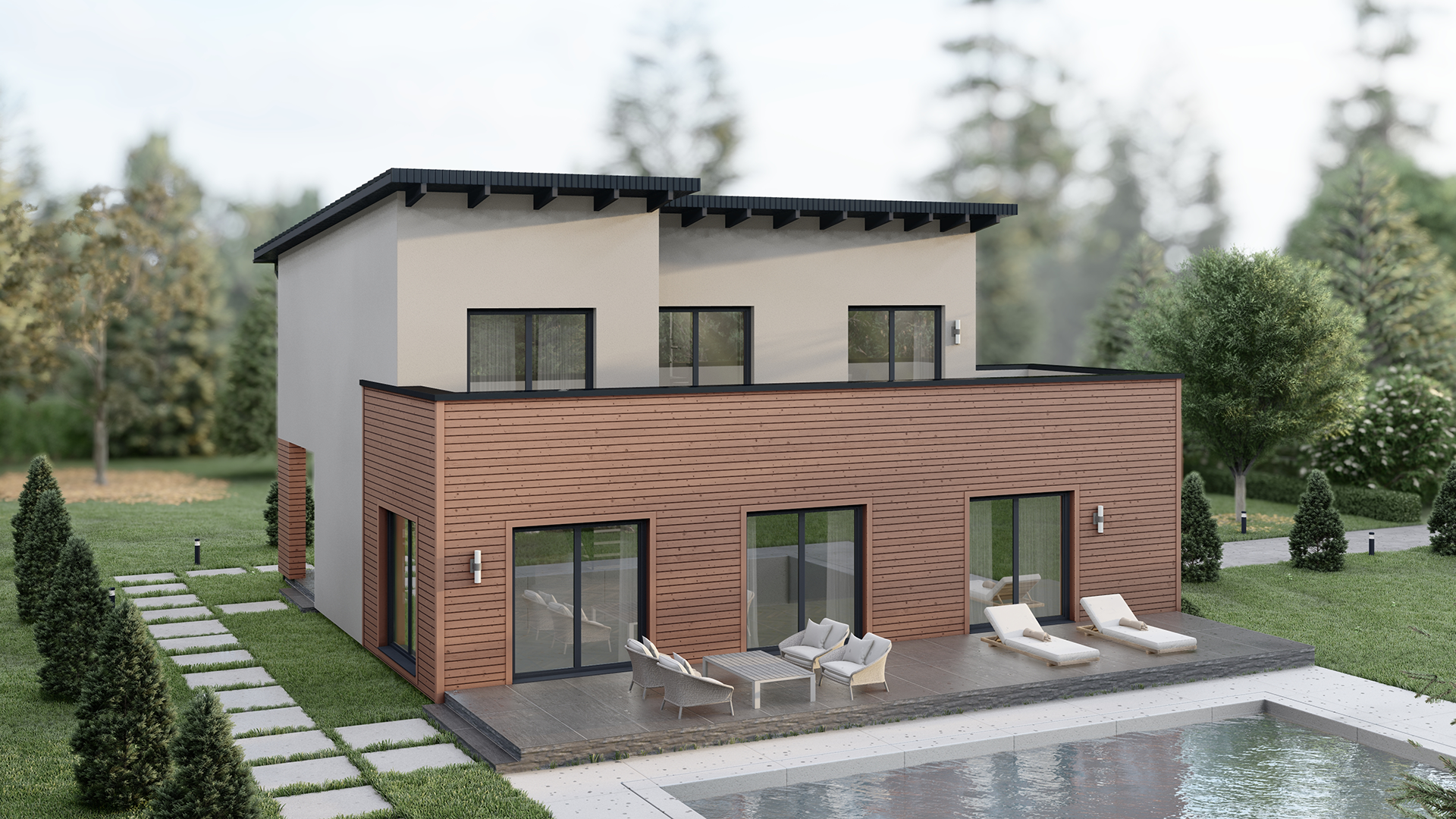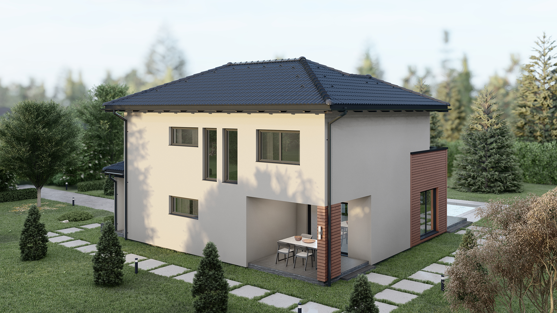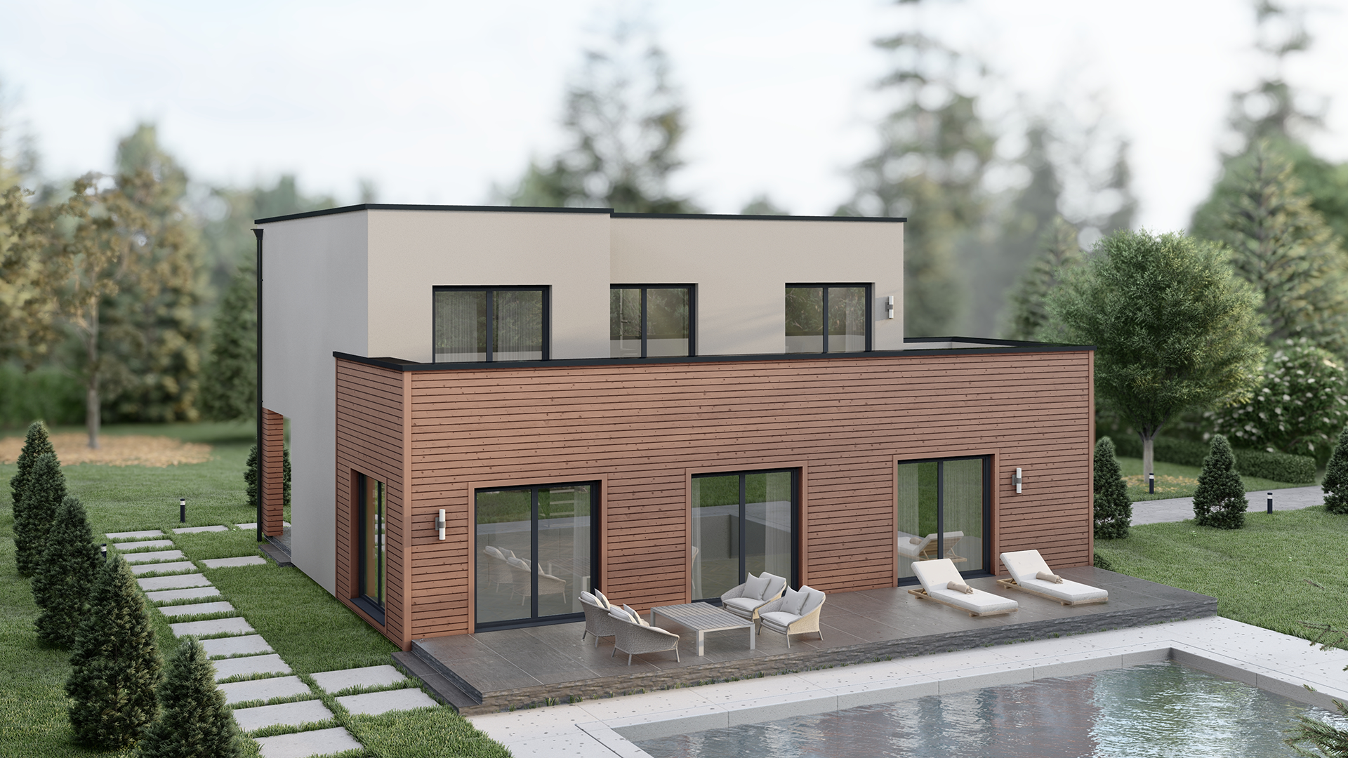 Zevs überzeugt mit klarer Architektur, einem offenen Raumkonzept und großen Fensterflächen. Auf zwei Etagen entsteht ein durchdachtes Zuhause für Familien, die modernes Wohnen mit funktionaler Raumaufteilung verbinden möchten. Die großzügige Terrasse bietet zusätzlichen Platz für entspannte Stunden im Freien.